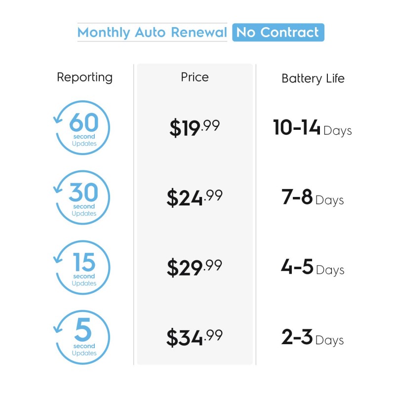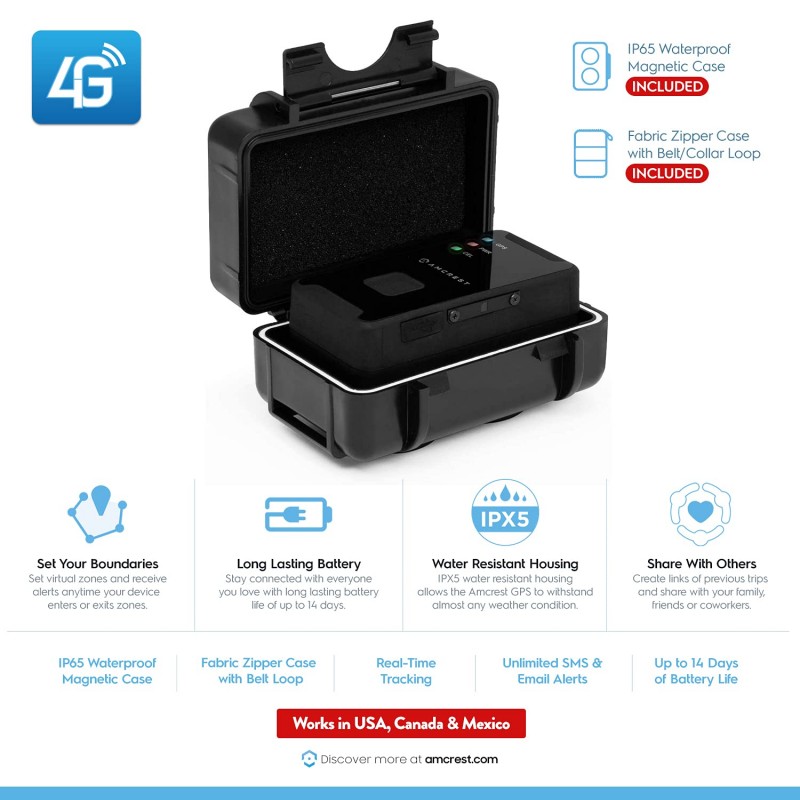 - COMPACT 4G GPS TRACKER - Perfect for tracking vehicles, loved ones (teens, spouses, children, elderly) or assets. With its sleek and compact design, it easily slips into cars, backpacks, strollers, luggage and is highly concealable. Monthly subscription required. No contracts or activation/cancellation fees. $19.99 – 60 second updates. $24.99 – 30 second. $29.99 – 15 second. $34.99 – 5 second updates. *Includes Magnetic Weatherproof Case & Fabric Zipper Case. USA, Canada & Mexico Only.