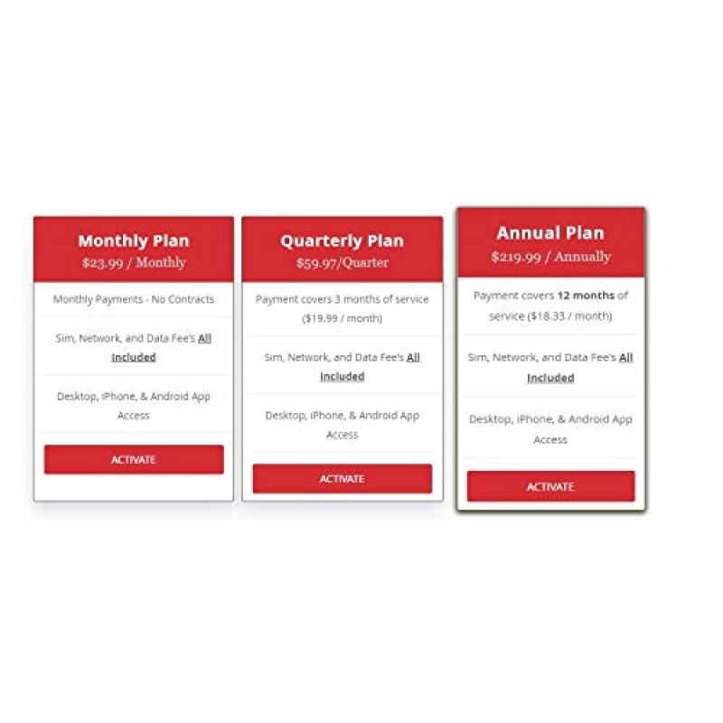 - Plan Starting at $18/month - No Contracts, No Fee's, Cancel Any Time Service Includes access to a Free GPS Tracking App, Cloud Hosted Web Application (accessible from any web browser), Data Plan, and up to 12 months of Data Storage.