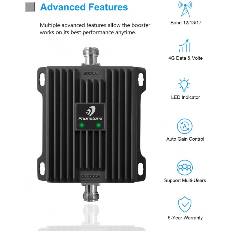 • 【Compatible With All US Networks】- The booster supports All U.S. Carriers 4G LTE for Verizon, AT&T, T-mobile, US Cellular, Straight Talk, Cricket etc, works with all cellular devices operating on band 12, band 13 and band 17. (700Mhz)